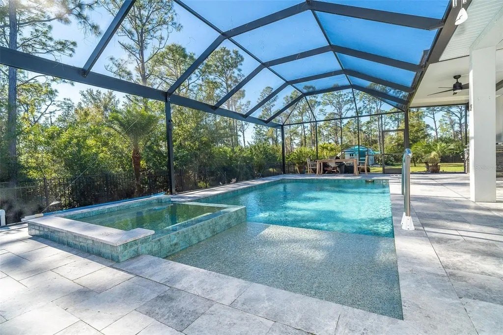 Welcome home to the Florida lifestyle you've been dreaming about. A place where space, sunshine, and everyday comfort come together effortlessly. Set on a rare double lot in the highly sought-after South Gulf Cove community, this 4-bedroom, 3-bath home is designed for living well and slowing down. Mornings begin with coffee on the lanai, afternoons melt into pool time, and evenings end under the stars with the spa gently bubbling nearby. The expansive screened lanai is the heart of the home, featuring a saltwater pool with sun-shelf entry, a heated spa, and plenty of room to lounge, entertain, or simply breathe. The fully fenced yard offers privacy and space to play, with mature landscaping, a large shed for storage and even your own putting green, because life should include a little fun. Inside, the home flows beautifully with an open great room design where cool stone countertops contrast perfectly against the warmth of a modern fireplace, creating a space that feels both stylish and inviting. Whether hosting friends or enjoying a quiet night in, the layout works for it all. While the living spaces are open and connected, each bedroom offers its own sense of privacy, ideal for family, guests, or even room for a home office setup. Built by EcoSun Builders, this home was thoughtfully designed with sustainability in mind, helping you reduce your carbon footprint while also lowering your monthly energy bills. With solar power already in place, you'll enjoy energy efficiency without sacrificing comfort. The home features Icynene open-cell and closed-cell spray foam insulation, creating a tight, energy-efficient envelope that keeps the heat out and the cool in, while making the home quieter, more comfortable, and more efficient year-round. It's a home that gives everyone room to live efficiently, and comfortably, together and apart. Located in one of the area's most desirable waterfront communities, you're surrounded by boating, parks, trails, and just minutes from beaches, golf, and the best of Southwest Florida living. This isn't just a house, it's where your everyday life starts to feel like a vacation.